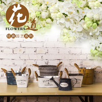 批发防水铁皮麻绳复古做旧铁艺简约创意手工多肉花盆插花花桶花器